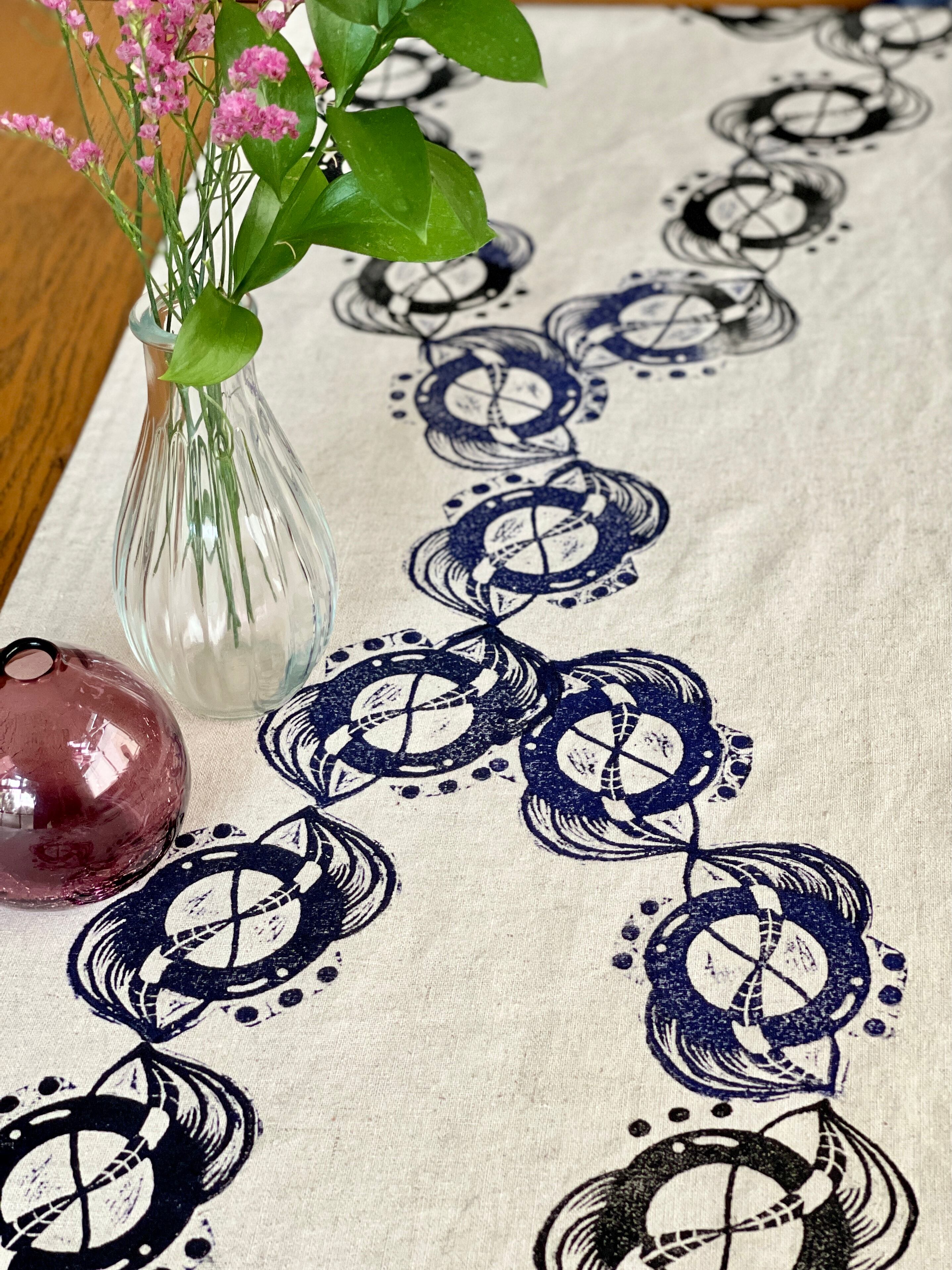 Join 繋ぐ / テーブルランナー, ブロックプリント, 150 × 31cm, Table runner, Block printed