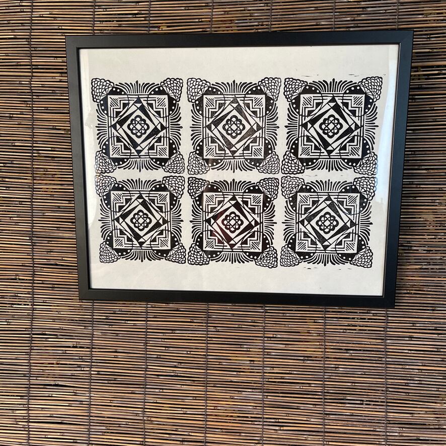 carved and hand printed by the artist.