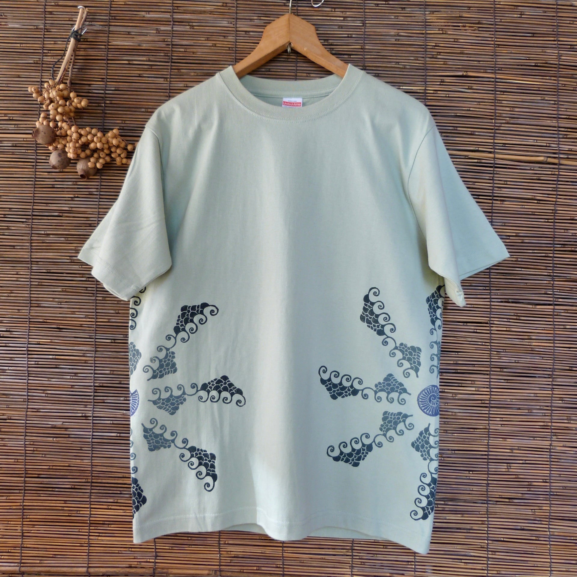 両サイドに入れた波の曼荼羅ブロックプリントが