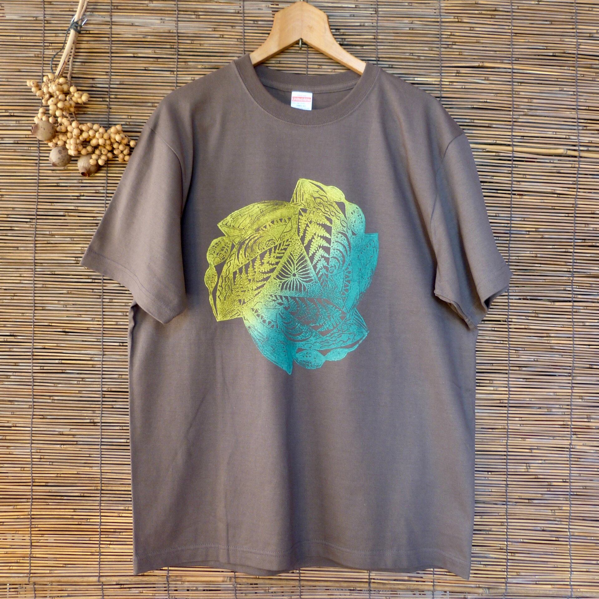 Fern mandala シダの曼荼羅 / T-shirt, ブロックプリント, block printed