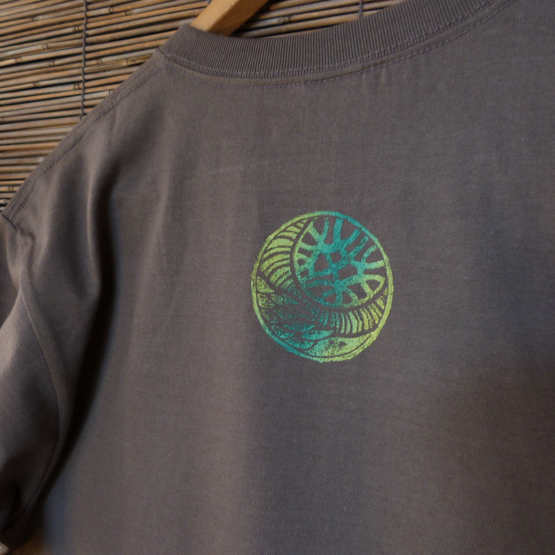 手彫り版を使ったブロックプリントT-シャツ。